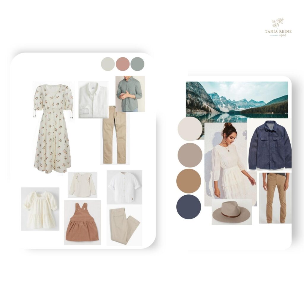 • Lo ideal es que elijáis 3 o 4 tonos y escojáis toda la ropa de los componentes de la sesión en función de esos tonos. Sí utilizáis algún color predominante recordad que siempre será más fácil combinar junto a colores neutros.
